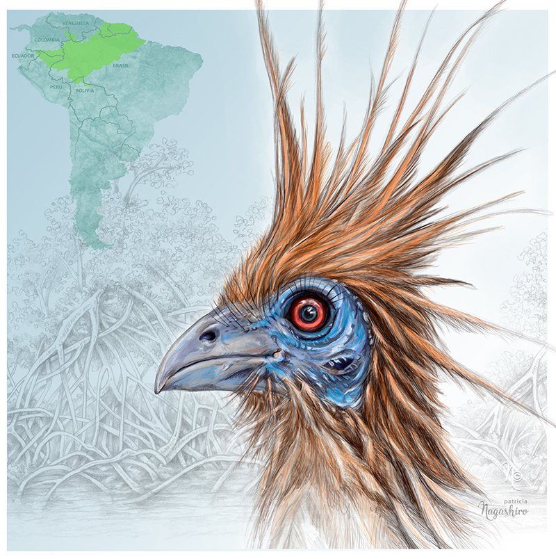 Ilustraciones e infografía realizadas como material de divulgación y formación sobre el Hoatzin.